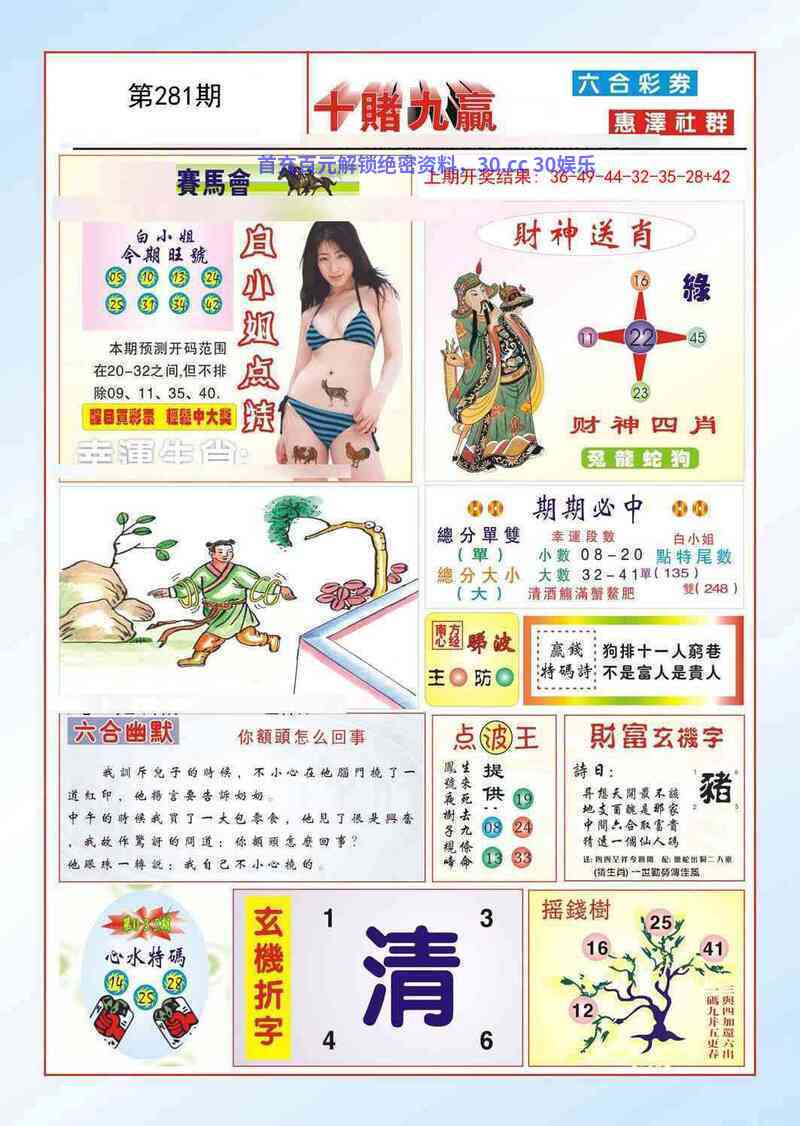 282期赢钱特码诗:百行千方尋入口,不是猪兒福有量 |